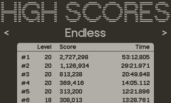 - Endless - Play until blocks fill the screen, with the fall speed slowly increasing.